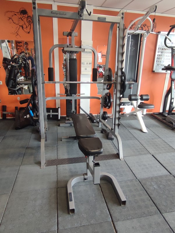 Cage à squats avec barre guidée et banc inclinable et pectoral fly