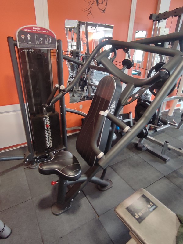 Presse de développé incliné . Le but de la presse inclinée est de concentrer davantage le travail sur les pectoraux supérieurs. Le principal avantage des développés inclinés est de développer la partie supérieure des muscles pectoraux.